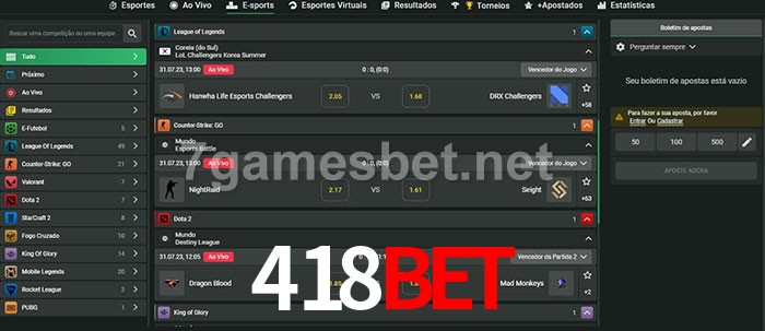 O 418bet oferece uma grande seleção de opções de apostas em e-sports com probabilidades competitivas